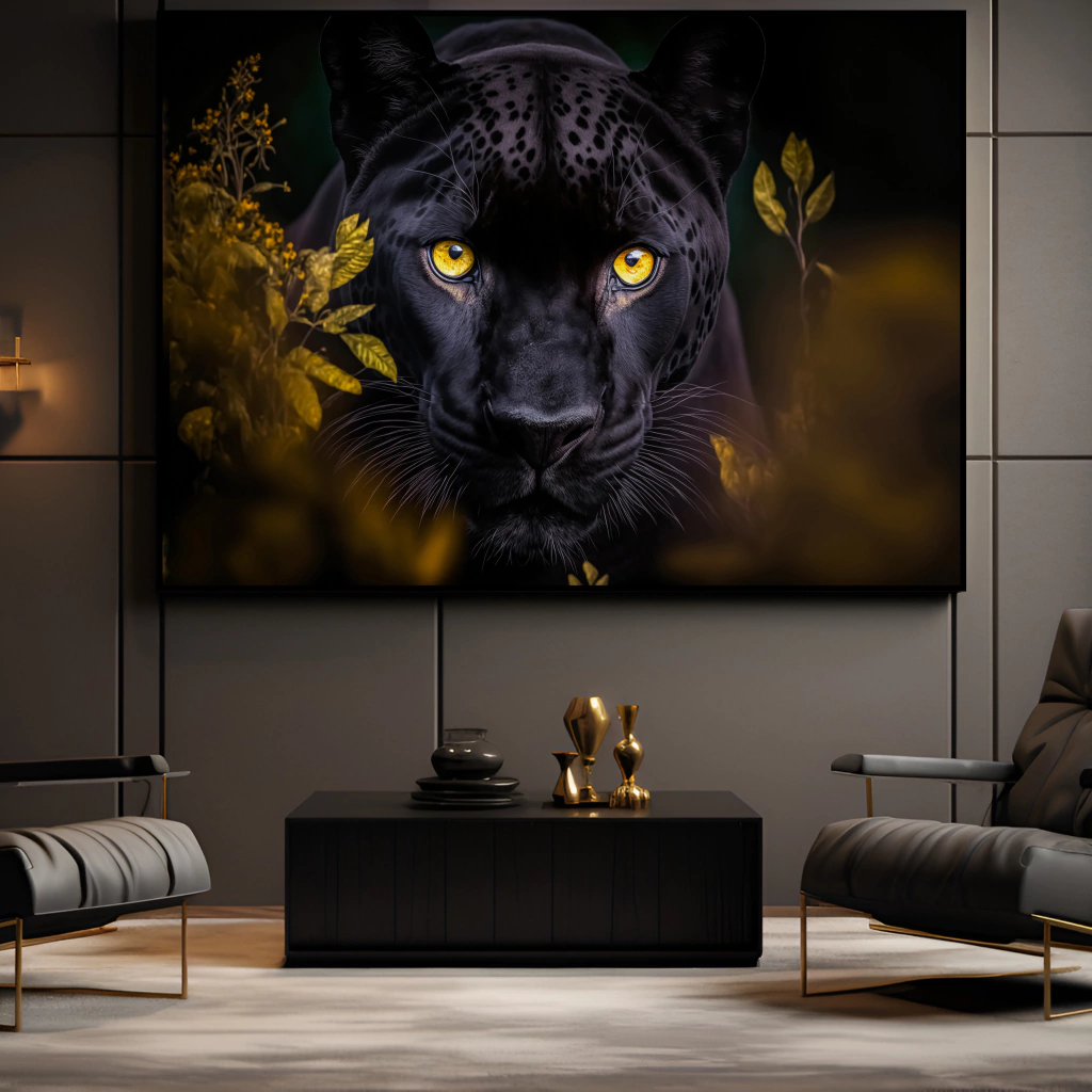 Quadro Decorativo Animais Pantera Negra Olhos Amarelos