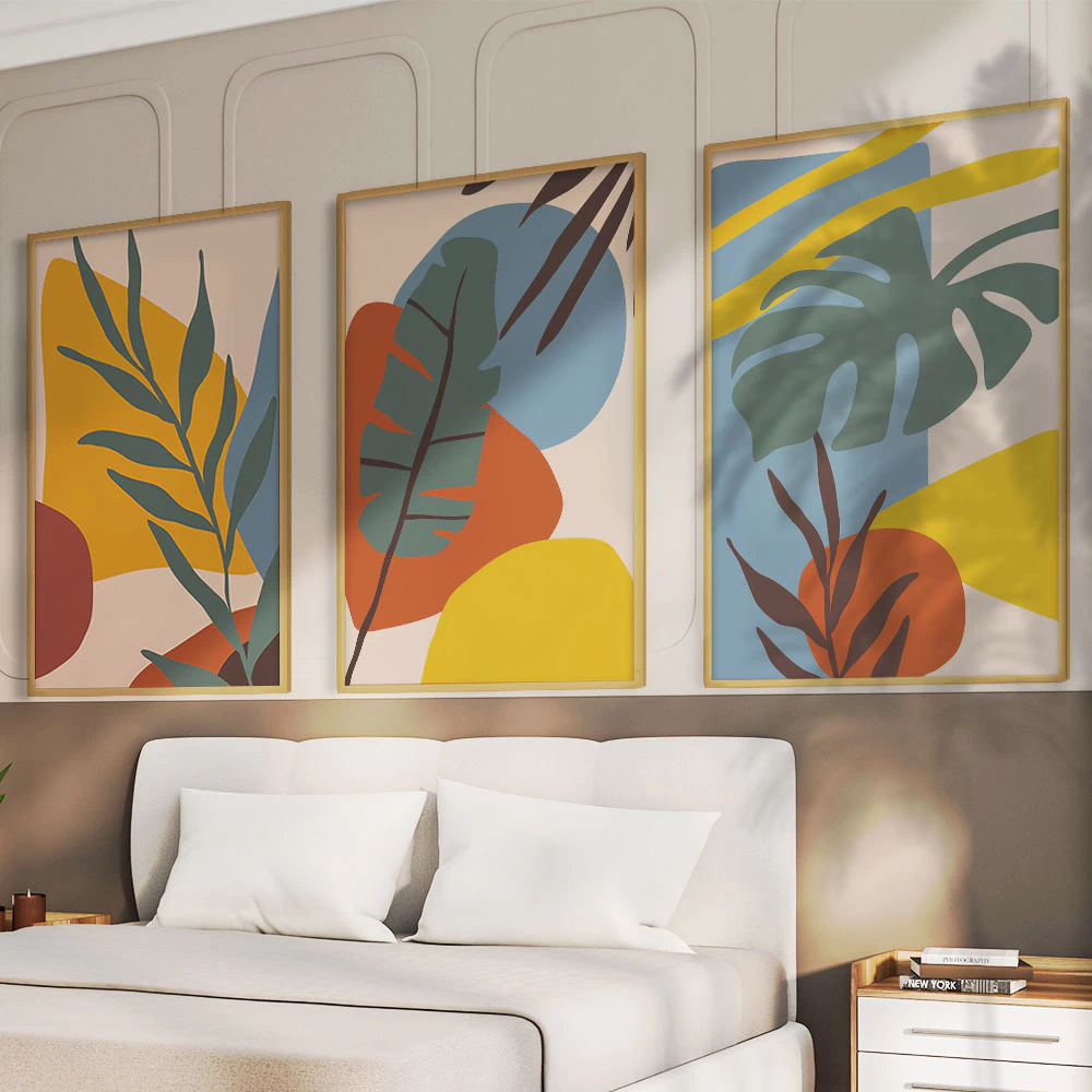 Kit 3 Quadros Decorativos Florais Minimalista Colorido