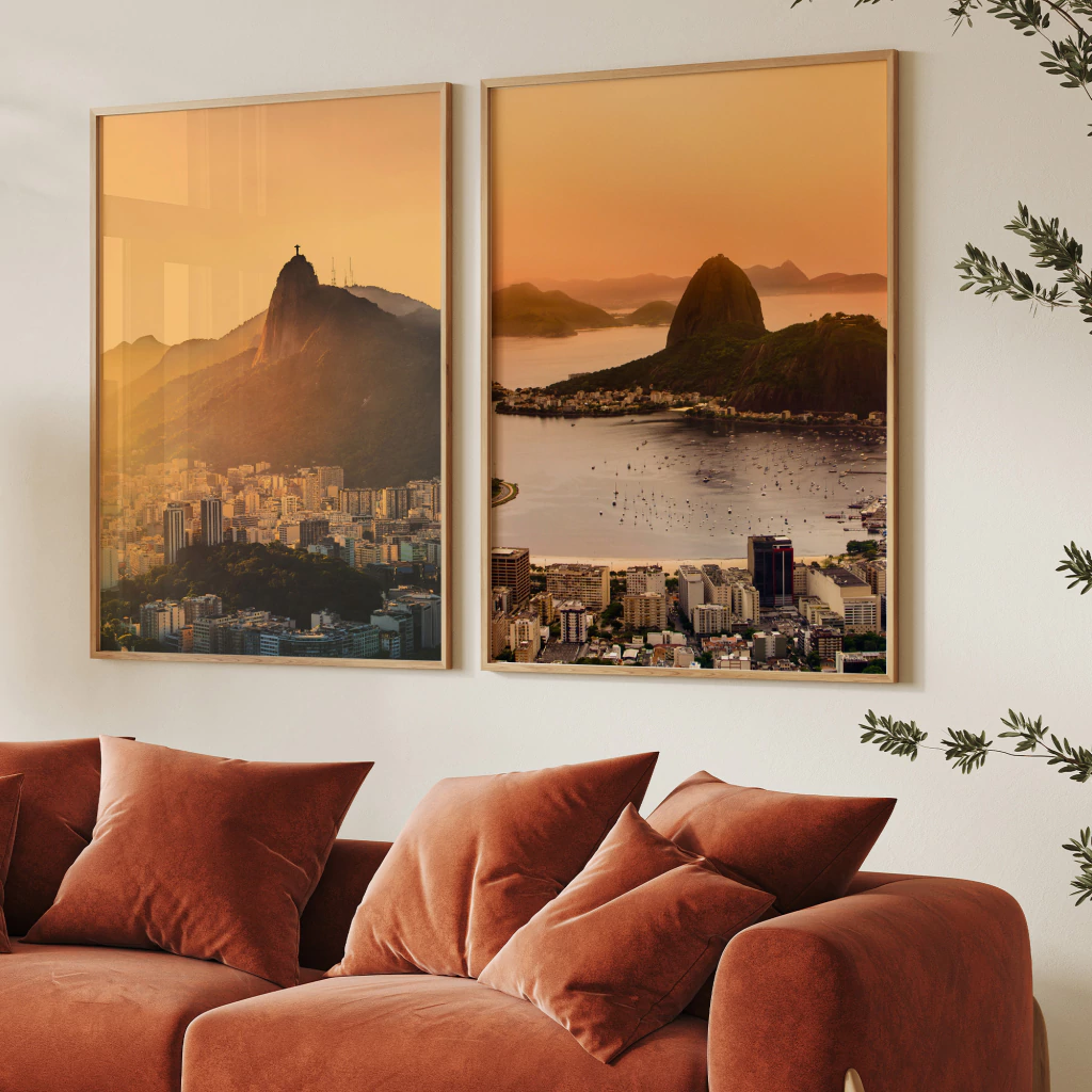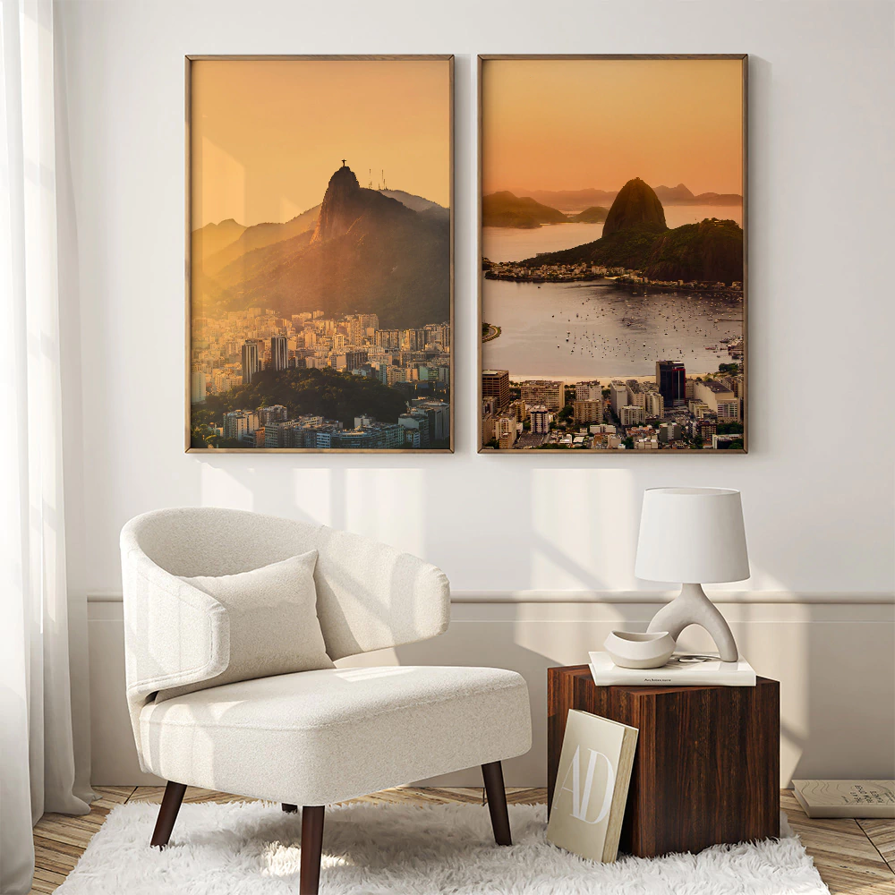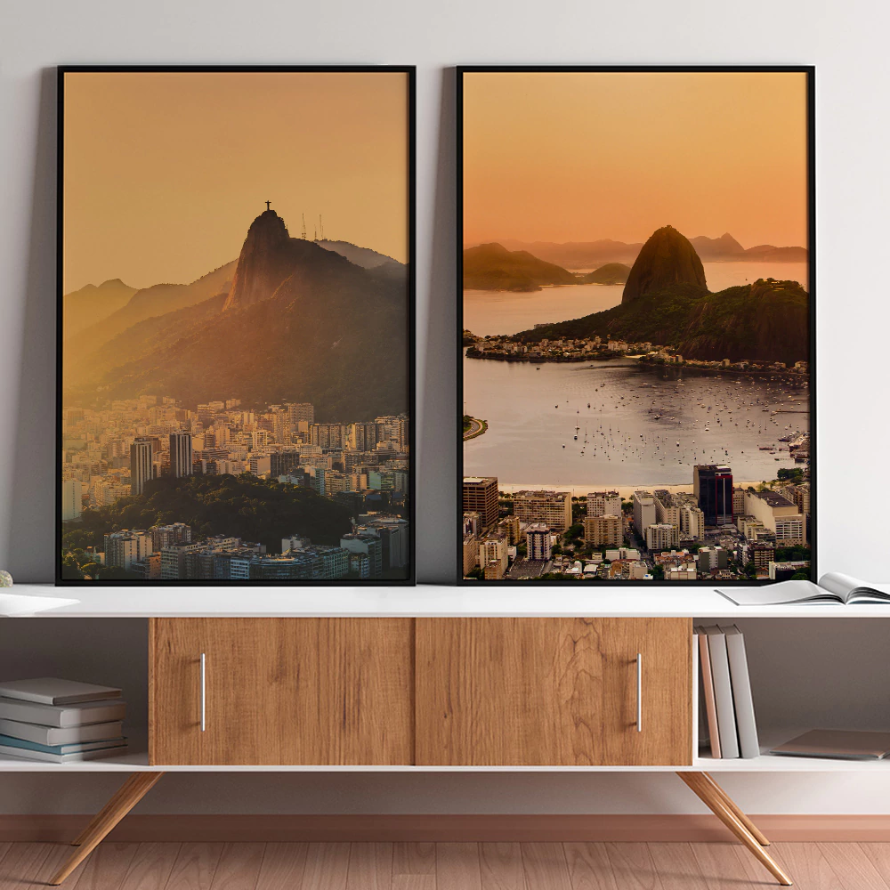 Kit 2 Quadros Decorativos Cidades Rio de Janeiro Por do Sol