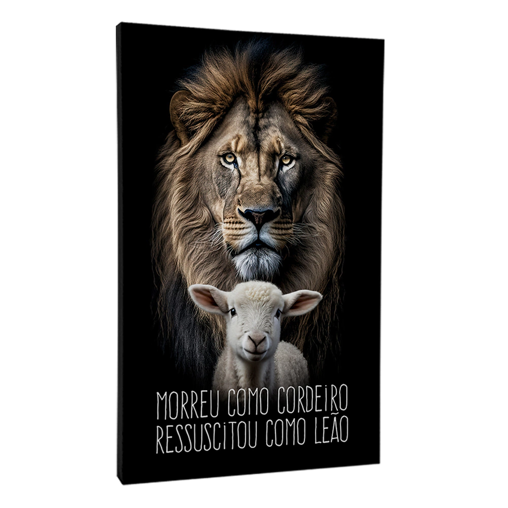 Quadro Decorativo O Leão e o Cordeiro II Morreu como cordeiro ressuscitou como leão