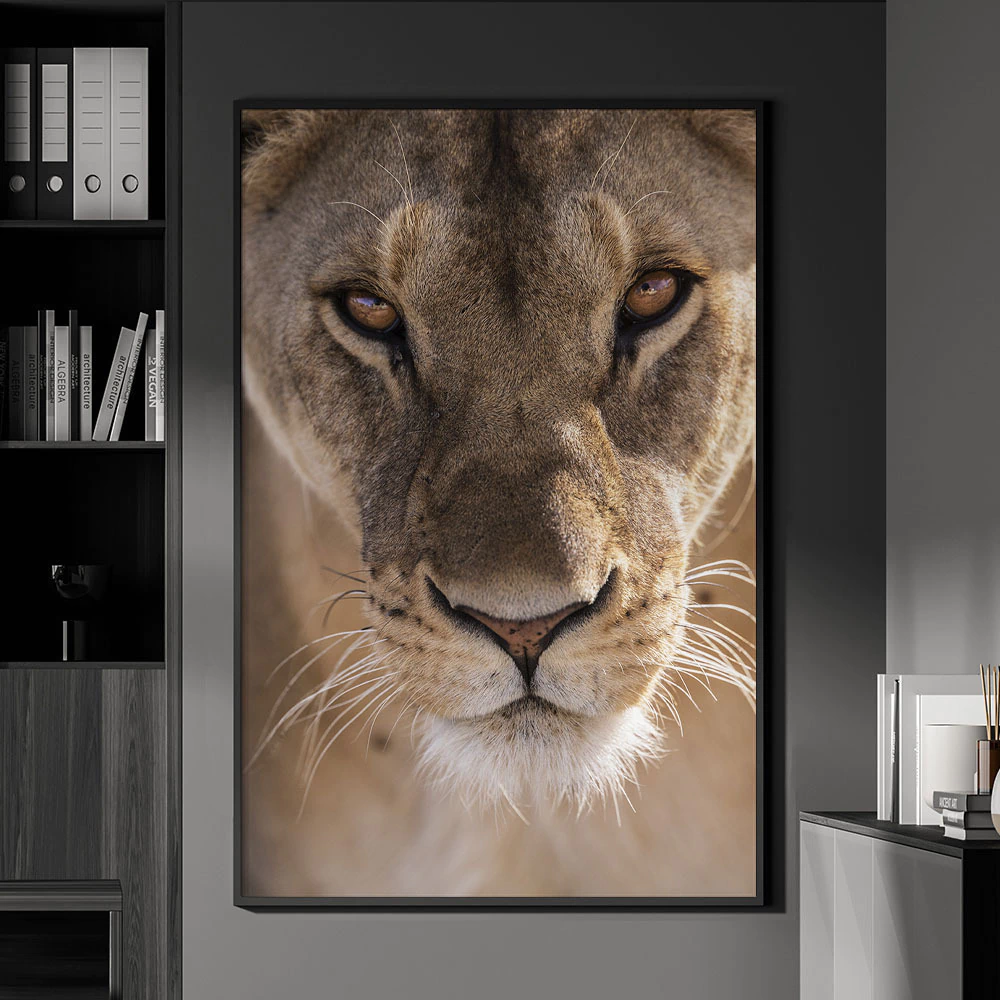 Quadro Decorativo Animais Leoa Rosto Retangular