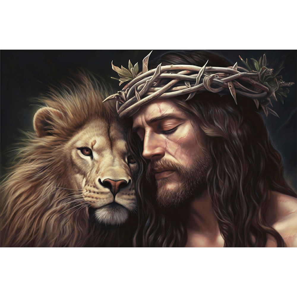 Quadro Decorativo Religiosos Jesus Coroa de Espinhos Salvador Leão Redentor Amor Sacríficio
