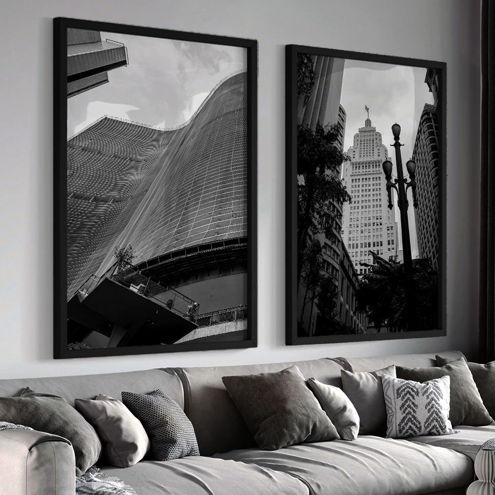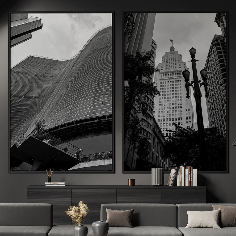 Kit 2 Quadros Decorativos Cidades São Paulo Preto e Branco