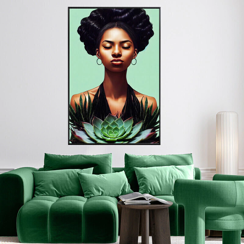 Quadro Decorativo Mulheres Mulher Negra ao Fundo Verde